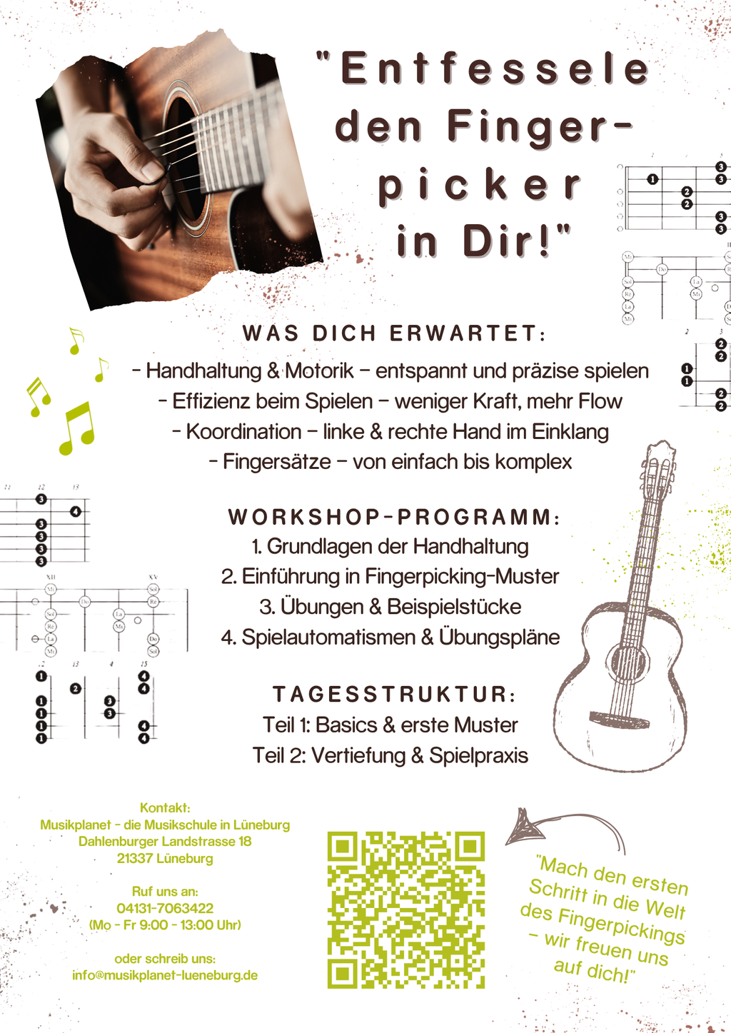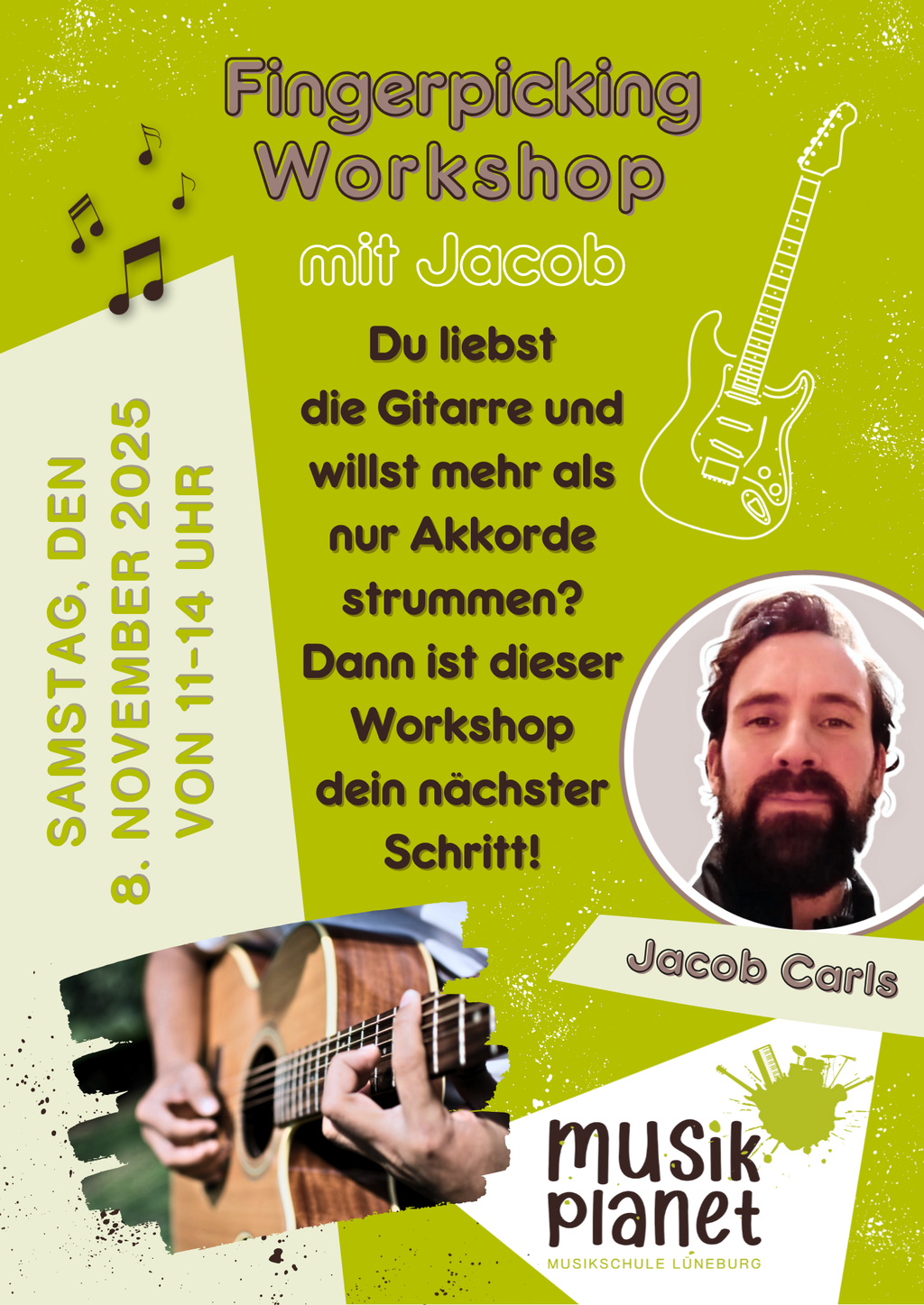 Du spielst gerne Gitarre, aber du kommst so selten dazu? Hier hast du die passende Gelegenheit dazu: 3 Stunden, in netter Runde, mit Gleichgesinnten und einem tollen Lehrer. Jacob zeigt dir die Tricks des Fingerpicking und bringt dein Gitarrenspiel auf ein neues Level ;-)